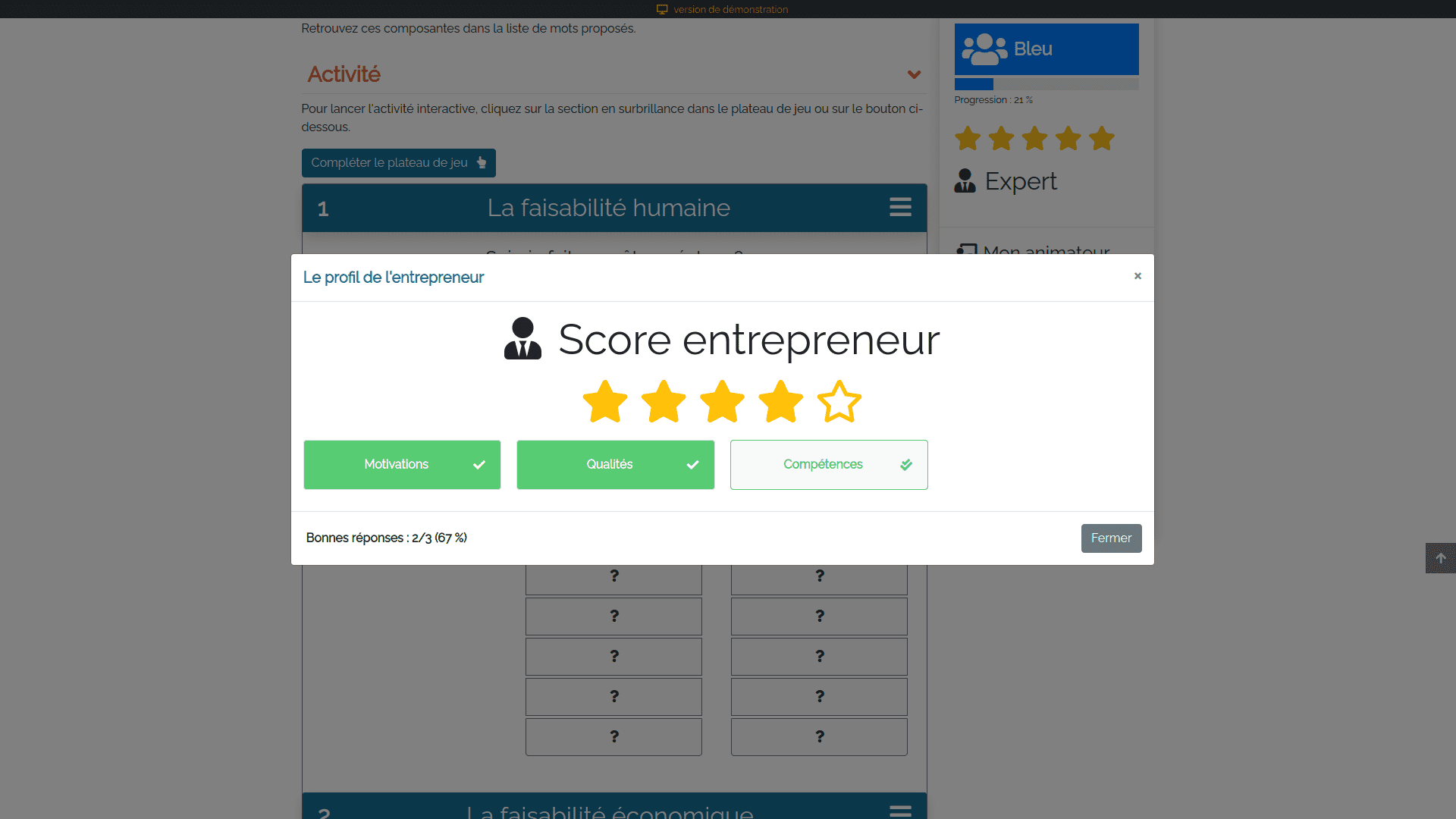En fin de partie, les élèves peuvent consulter des vidéos d’entrepreneurs retraçant des témoignages de parcours locaux. Ces vidéos représentent de véritables sources d’inspiration pour les élèves.